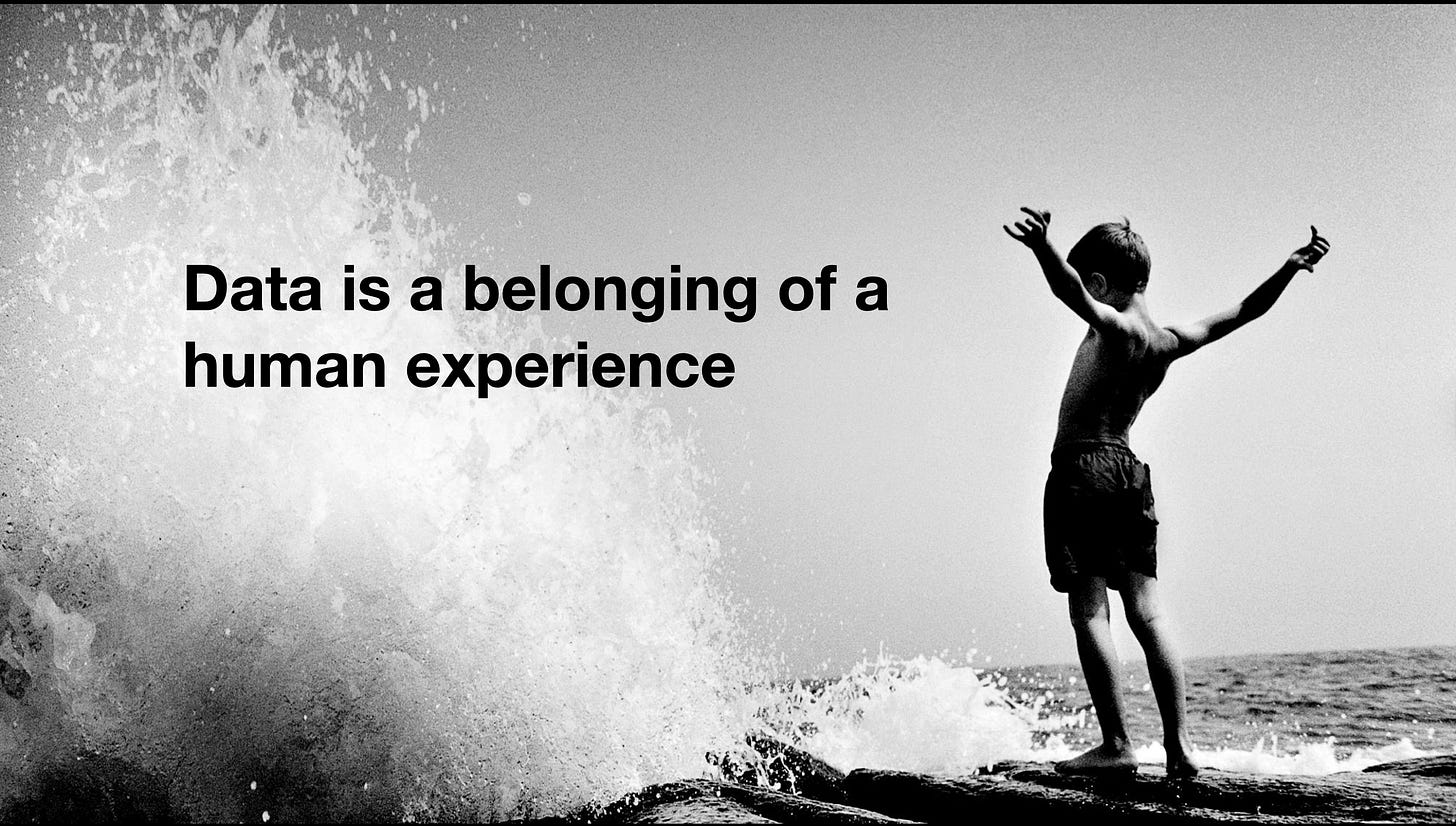 Data isn’t an artifact of human experience. Data is a belonging of human experience.