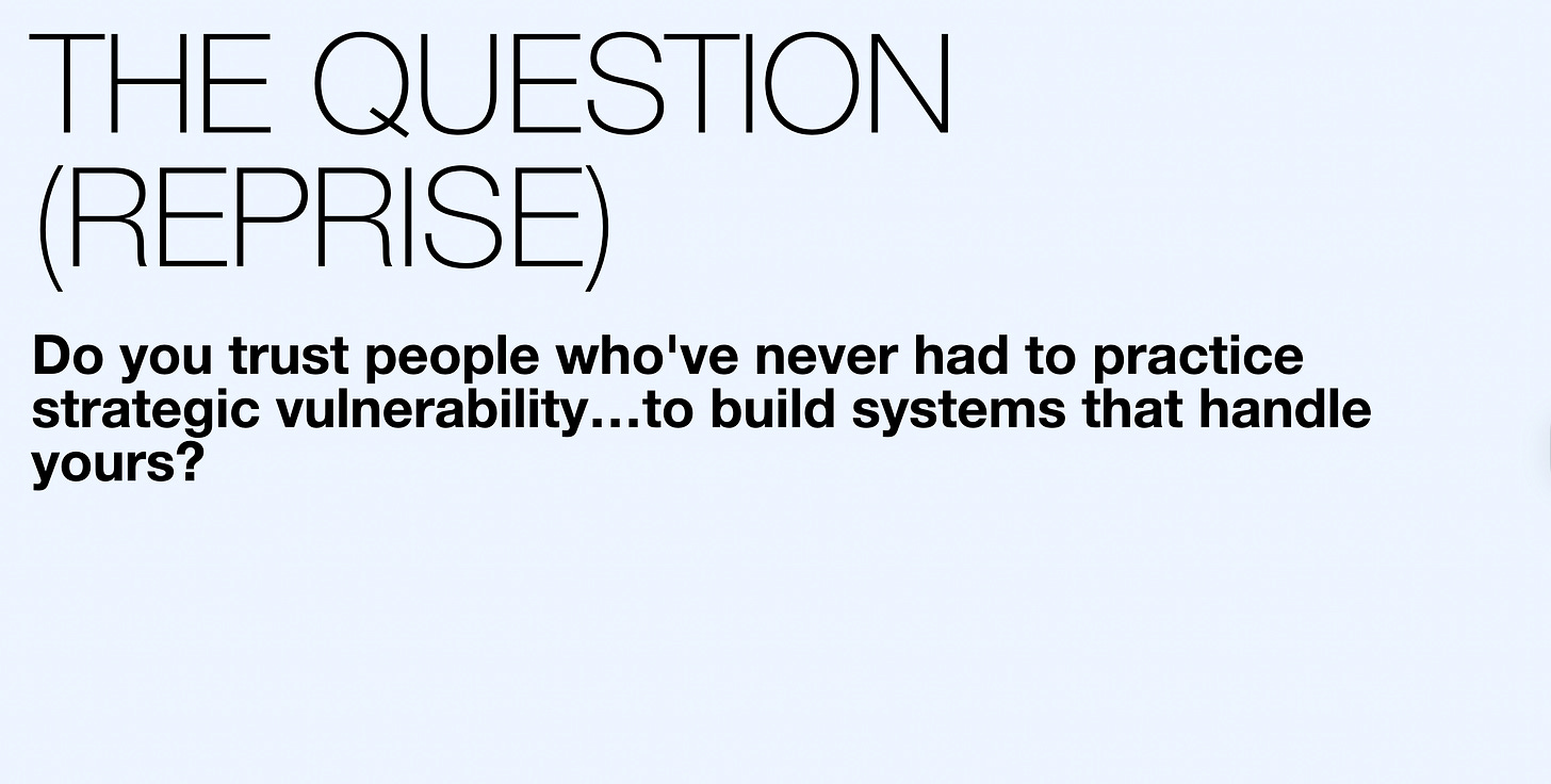 Do you trust people who’ve never had to practice strategic vulnerability to build systems that demand it?